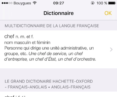 Il ne s’agit pourtant pas là d’une grande nouveauté, le dictionnaire étant intégré de longue date dans le système d’exploitation iOS. Pourtant, celui d’iOS 9 se démarque des précédentes versions puisque cette nouvelle mouture intègre un dictionnaire français-anglais.
