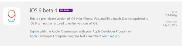 Comme prévu, Apple vient de sortir la quatrième bêta d’iOS 9 pour les développeurs. Ils peuvent d’ores et déjà la télécharger depuis le Dev Center ou faire la mise à jour en OTA depuis l’appareil iOS.