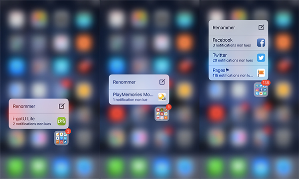 Hier, nous vous parlions des nouvelles interactions sur les notifications grâce à 3D Touch. Aujourd’hui, on vous parle toujours de la technologie 3D Touch avec cette fois de nouveaux raccourcis sur les dossiers. Sur iOS 9, 3D Touch ne donne aucun résultat lors d’une pression sur les dossiers. Mais avec iOS 10, l’utilisateur est en mesure d’avoir un accès direct aux applications situées dans les dossiers lesquelles ont reçu des notifications, encore non lues.