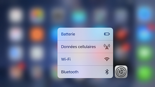 Si vous avez installé iOS 10 alors vous pouvez déjà accéder aux données cellulaires en exerçant une pression sur l’icône de l’app réglages :