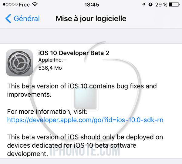 Si vous avez déjà la première bêta d’iOS 10 sur votre appareil, rendez-vous dans l’app Réglages > Général > Mise à jour logicielle pour lancer le téléchargement de la seconde bêta.